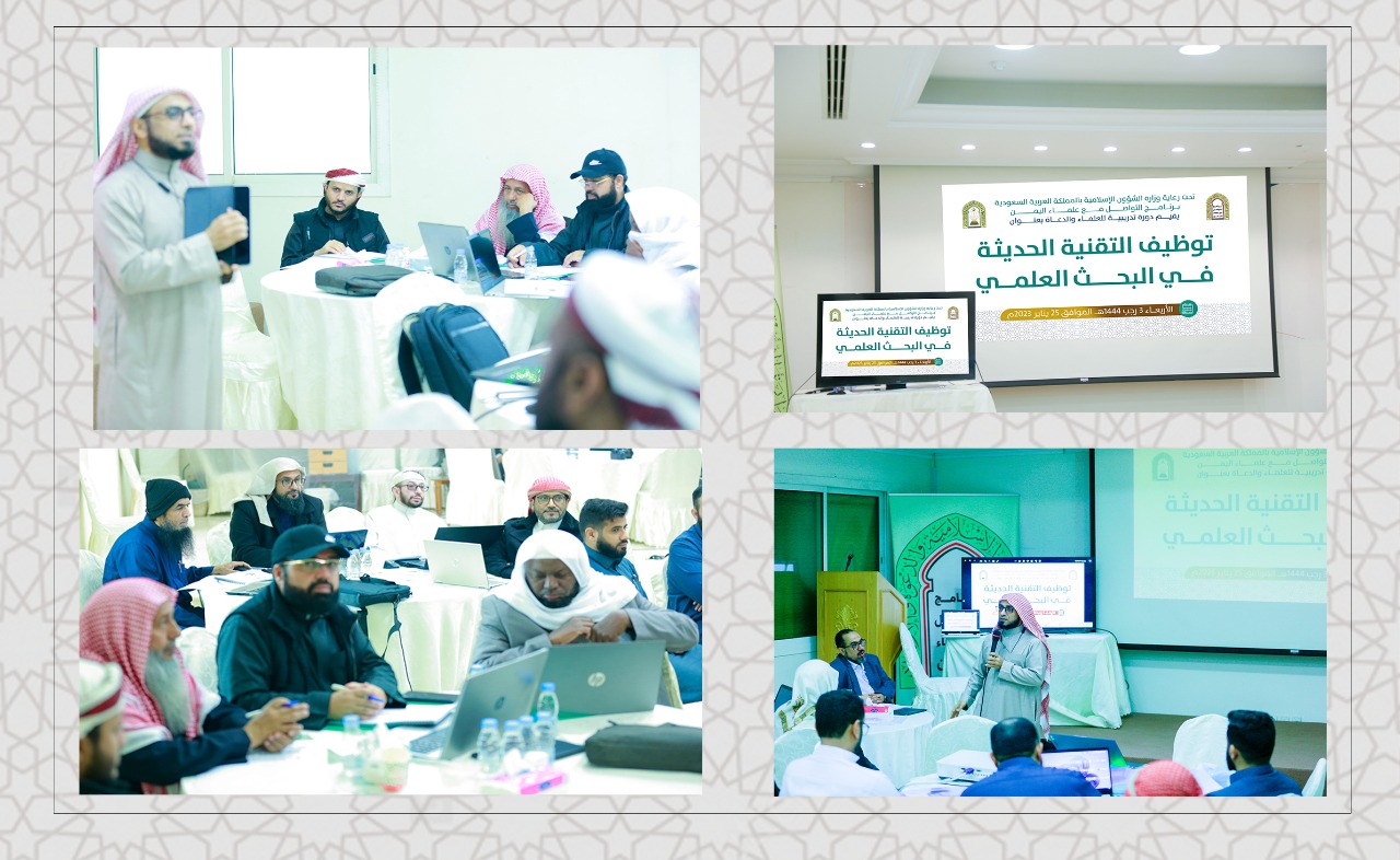 أقام برنامج التواصل مع علماء اليمن بوزارة الشؤون الإسلامية والدعوة والإرشاد، الأربعاء 25 يناير 2023م، بمقر البرنامج بالرياض، دورة تدريبية لعلماء ودعاة اليمن تحت عنوان "توظيف التقنية الحديثة في البحث العلمي".